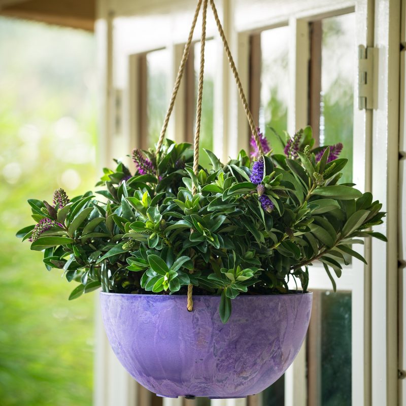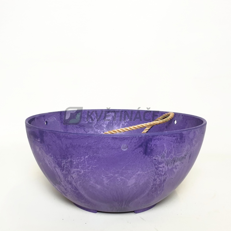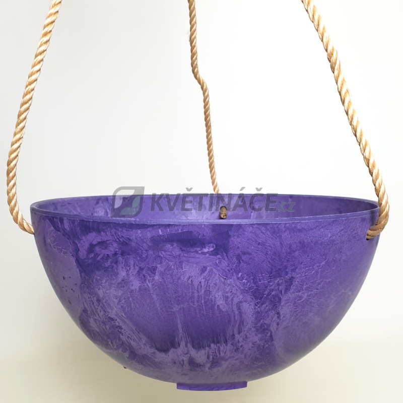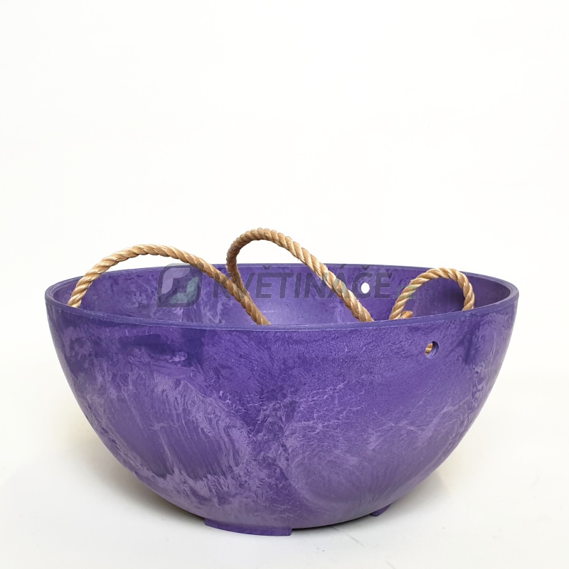 Závěsný květináč Artstone Fiona s rozměry 25x12cm má fialovou matnou barvu. Vyrobený z kvalitního plastu, který lze používat celoročně v exteriéru, ale i interiéru. Mísa má samozavlažovací systém a odnímatelný špunt pro odtok přebytečné dešťové vody. Závěsné provázky jsou součástí balení, které se dají jednoduše odejmout a z květináče udělat dokonalou bonsajovou mísu.