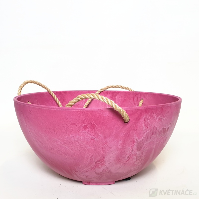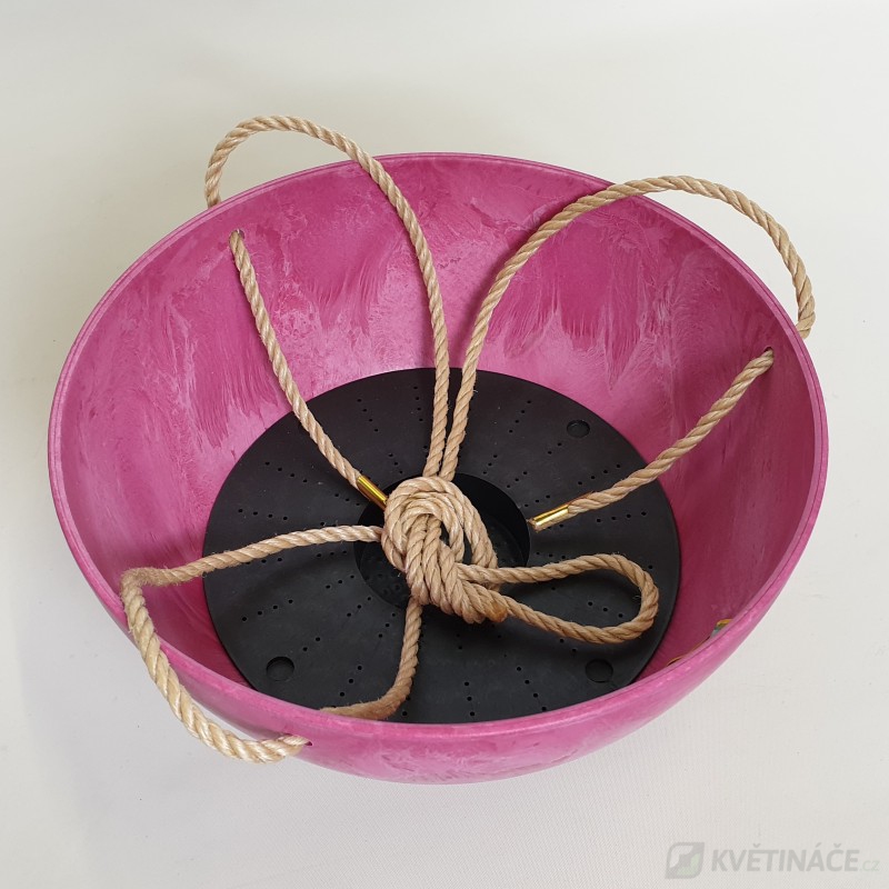 Závěsný květináč Artstone Fiona s rozměry 25x12cm má růžovou matnou barvu. Vyrobený z kvalitního plastu, který lze používat celoročně v exteriéru, ale i interiéru. Mísa má samozavlažovací systém a odnímatelný špunt pro odtok přebytečné dešťové vody. Závěsné provázky jsou součástí balení, které se dají jednoduše odejmout a z květináče udělat dokonalou bonsajovou mísu.