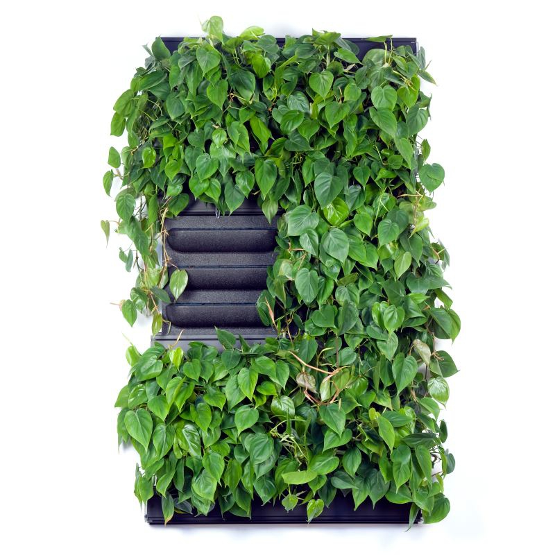 Živá zelená stěna LivePanel Pack 2x2 s rozměry: šířka 87 cm x výška 109 cm s plochou 0,95m2. Konstrukce zelené stěny se skládá z 4 kazet na 36 rostlin, 2 rezervoárů.