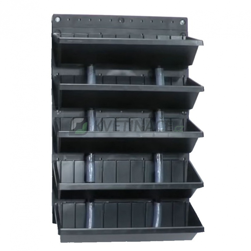 Zelená živá stěna základní set s rozměry šířkou 50cm a výškou 82cm. Ten se skládá z 4 pater vodorovně zavěšených na nosné konstrukci. Do každého patra lze vložit 3 až 4 rostliny s průměrem balu 12cm. Objem nádrže vody v každém patře je 1,6 litrů. Vhodné pro rostliny hydroponní tak i pěstované v klasickém v substrátu. Jednoduchá montáž je ohromnou předností této stěny a na zeď to zvládnete namontovat do 60 minut včetně rostlin. Výměna uhynulých nebo špatně vypadajících rostlin je snadná a rychlá i pro naprostého laika. Zelenou živou stěnu lze také neomezeně napojovat jak do šířky. (např. ze čtyř modulů lze vytvořit souvislou stěnu o rozměrech š. 200cm x v. 75cm) V ceně jsou zahrnuty základní položky (nosná základna, 3 x truhlíky s přepadem vody a všech nutných hadic pro přepad vody + 1 x nejspodnější truhlík bez přepadu vody). Cena je bez šroubů, bočních krycích panelů, rostlin a bodových světel.